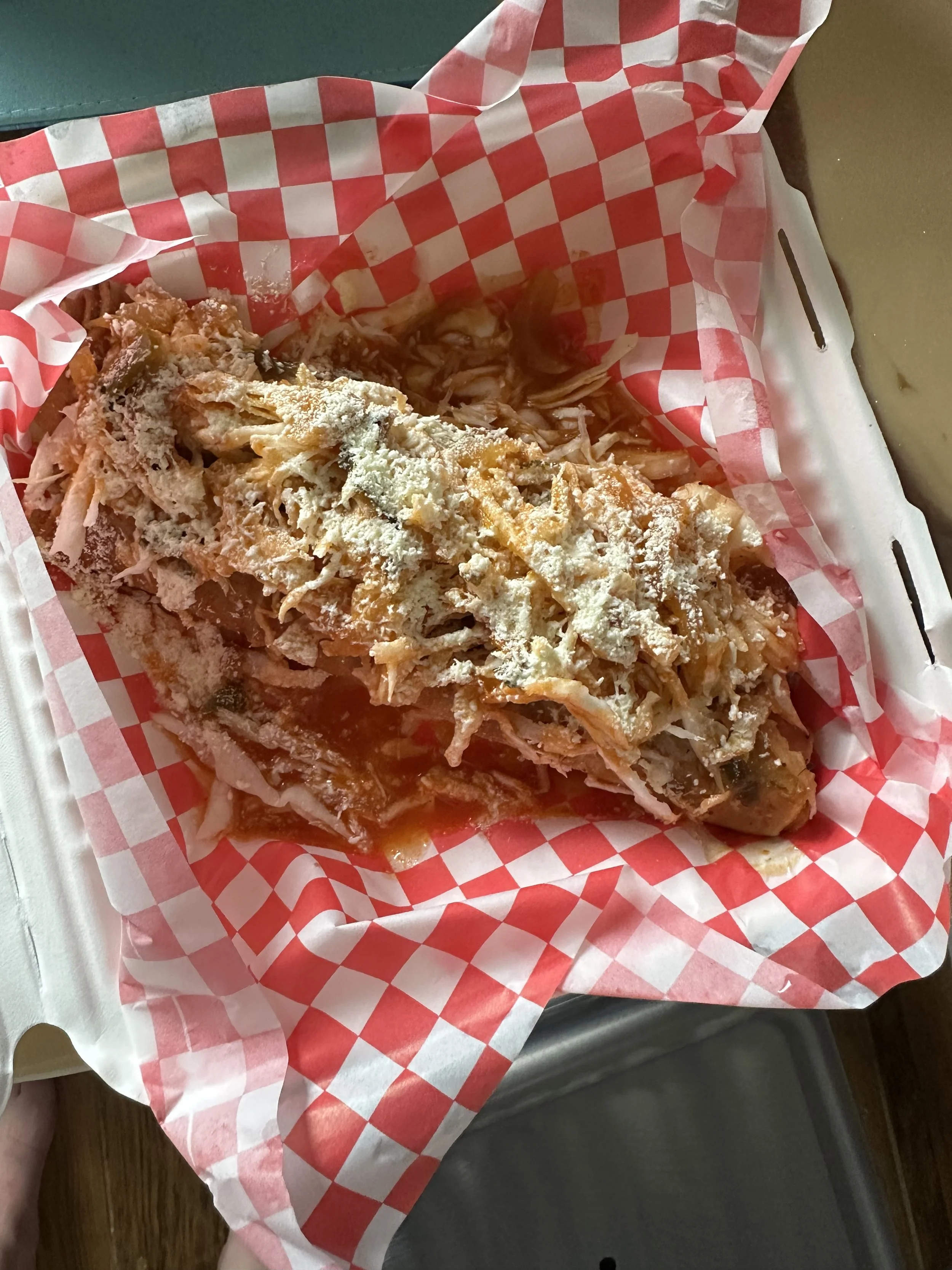 The first day, I tried their chicken and rice. It was incredible, though I can’t figure out why, because it was just fried chicken and rice. But it was easily some of the BEST fried chicken I’ve had. The true standout, however, was the Honduran Flauta Tacos. The sauce was savory, sweet, tangy, and slightly spicy. It was also smothered all over the lightly fried flautas made with chicken cheese and some cabbage on top.